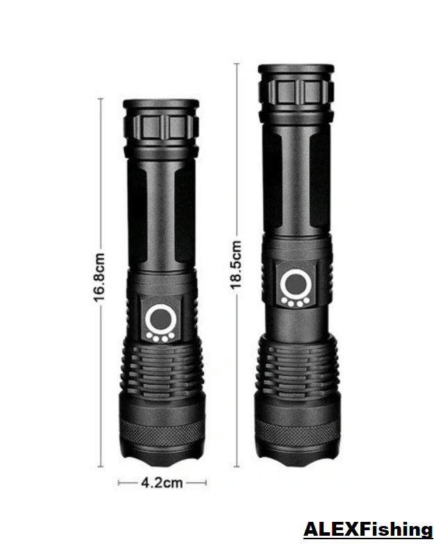 - Maitinimas: 26650, 8800mAh 4.2v arba 3x AAA baterija/elementas